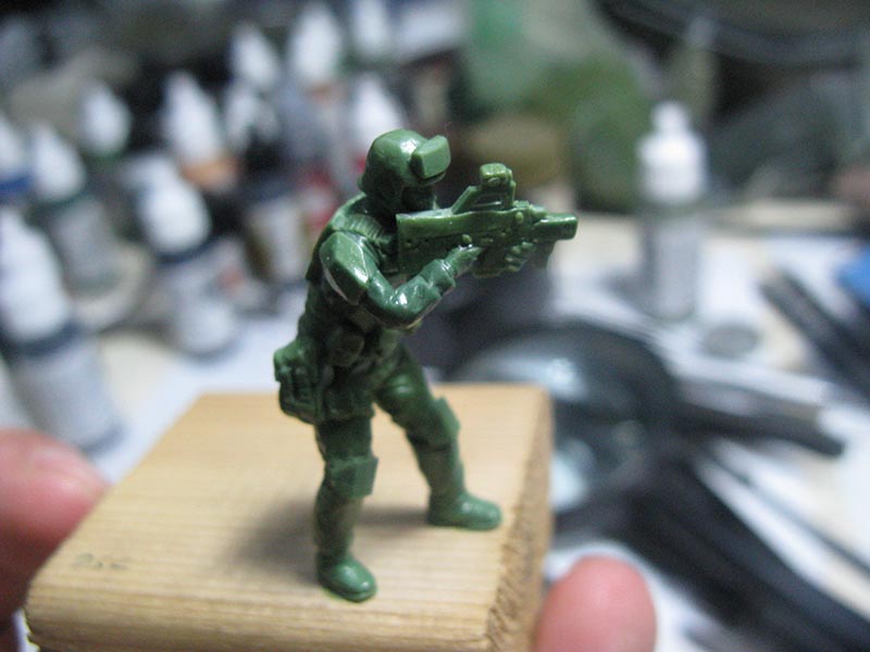 Now for the hard part. 1:52 is a great scale. The miniature has a lot of presence and the details are discernible at arms length without dialing in your focus. The problem is that along side popular 28mm size miniatures it looks too oversized. After taking some measurements with GW miniatures I've got lying around I determined that in order to fit in with other popular manufacturers miniatures the scale of my figures needs to be between 1:54 and 1:60. I'm going to do some tests with drawn or printed silhouettes to figure out what the exact scale should be.